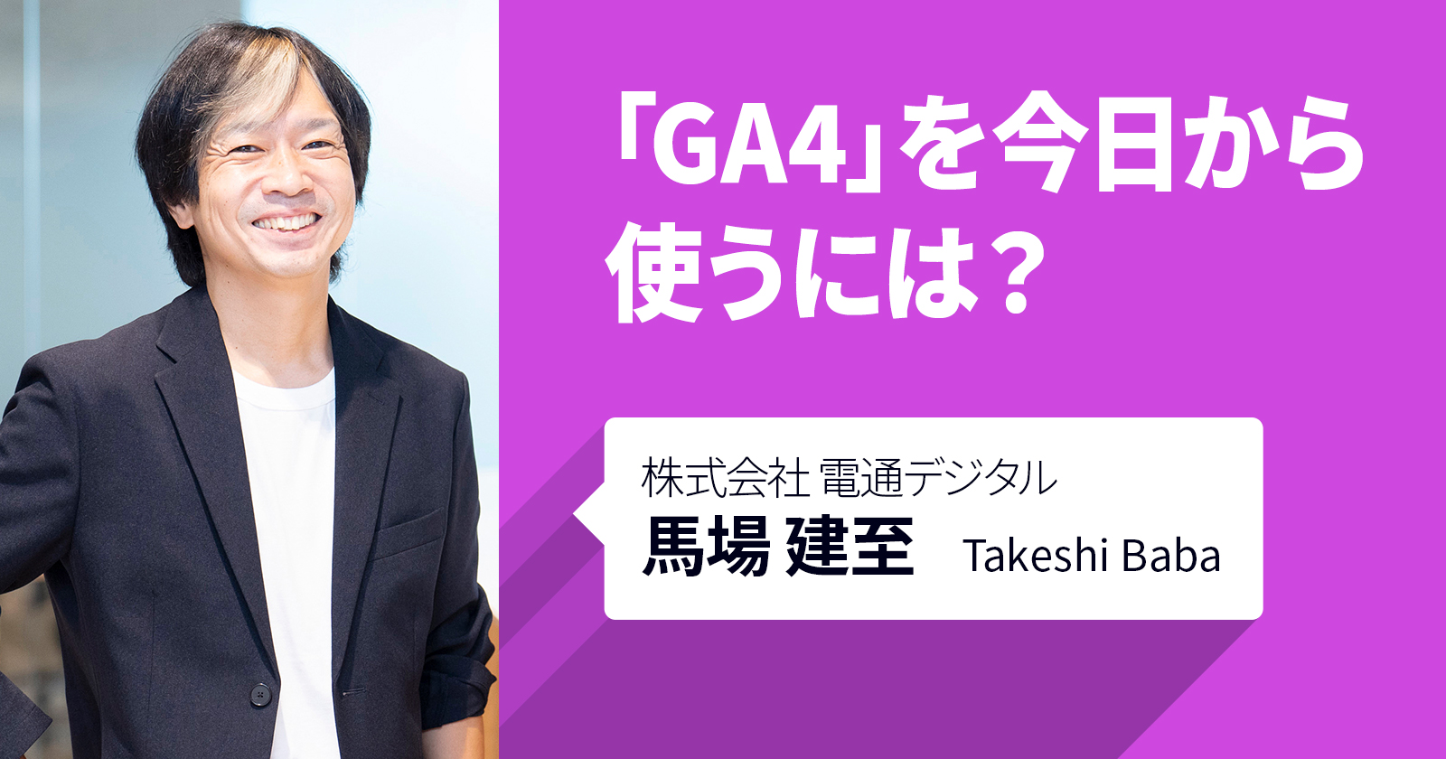 Webメディアの運用やWebマーケティングに、もはや必須のアクセス解析。アクセス解析ツールの主流である「ユニバーサル アナリティクス(UA)」は2023年7月1日でサポートを終了することが決まっており、これに代わるツールとして「Google アナリティクス 4(GA4)」への移行が急務です。株式会社電通デジタル エクスペリエンスプロデュース部門でアナリティクス領域の活性化や啓発活動を行う馬場建至氏にインタビューした記事の前編では、そんなGA4への移行の背景やメリット、早めに乗り換えるべき理由などについて聞きました。